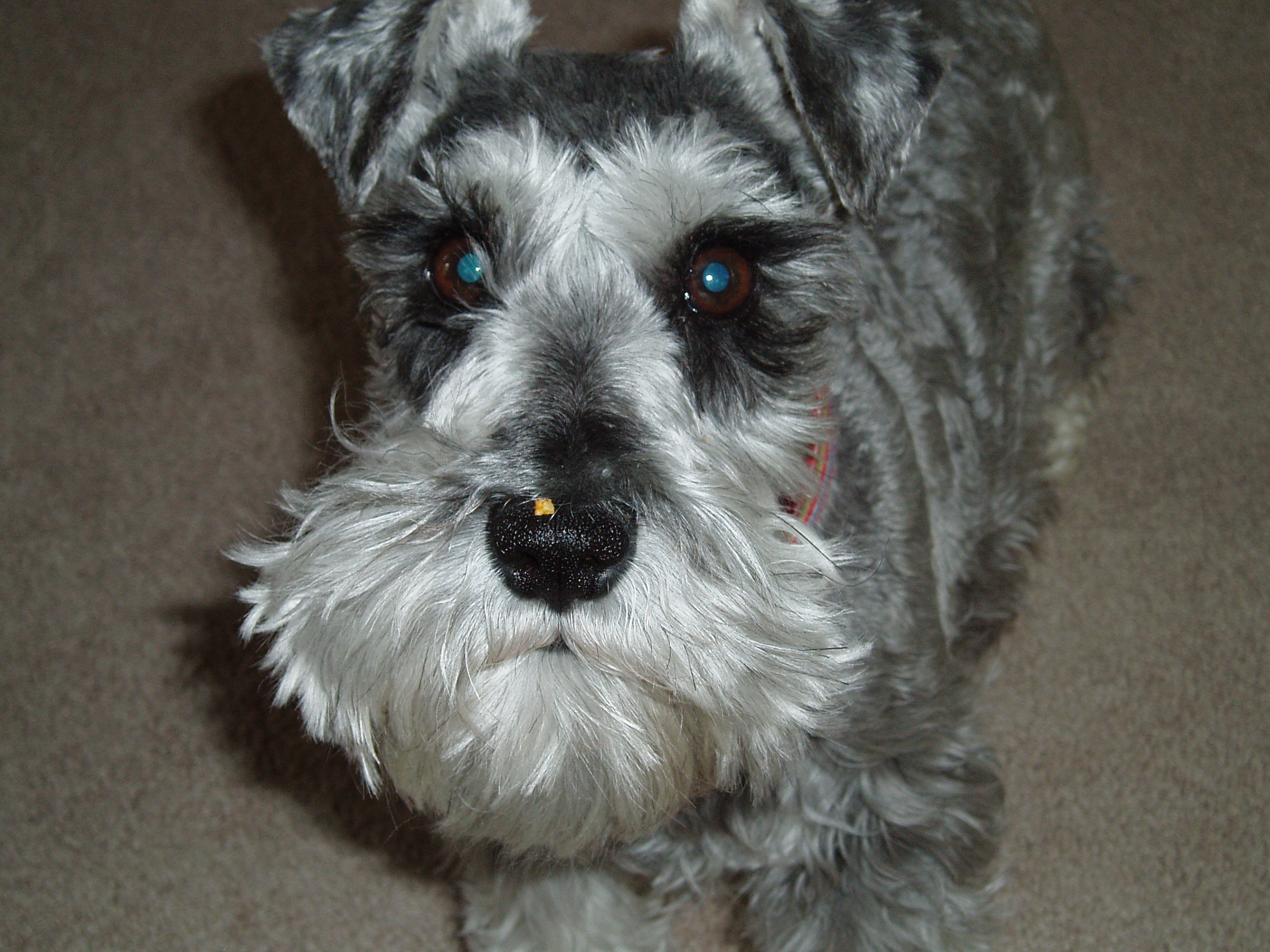 I love the photo of her even though she’s having a seriously bad hair day (yes, dogs have bad hair days too – Molly has lots of them!). If you look close you can see something orange on her nose – that’s a Doritos crumb. We really should have named her Bissell, because she’s like a small vacuum cleaner always at work – she really comes in handy around dinner time. Some of you thought I was a really good house keeper – now you know my secret.