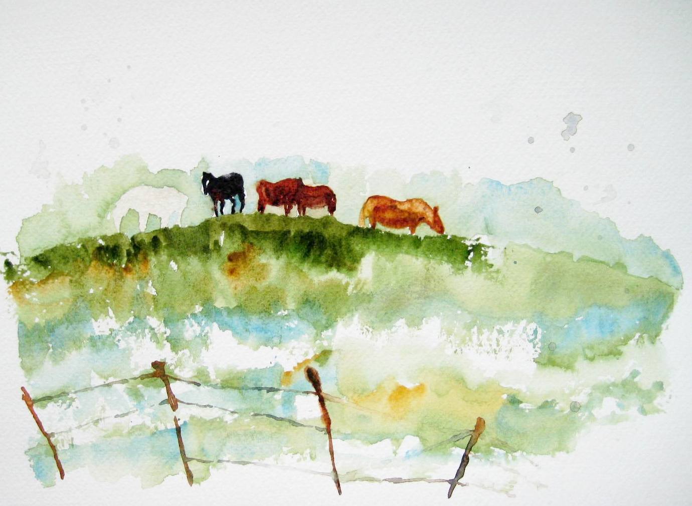 After church yesterday Grady and I got the springtime itch because the weather was so nice (especially compared to the weather we’ve been having) so we decided to get out and enjoy it. Grady loves to creek fish so that’s what he did outdoors and I painted. I found a field with some horses in it and decided to try my hand at painting some horses. I think I could have done a lot better job if they hadn’t moved so much! I would get one leg painted and the horse would move – it was very frustrating :). As you can tell I need a LOT more practice with horses – preferably non-moving horses. Next time I think I’ll take pictures and paint them in my studio (AKA kitchen) at home – that way they can’t move on me and I won’t have to be in such a hurry to paint them that I make them look like moose instead of horses. After a while I gave up on the horses and drove around and found an old house I love off of Station Camp road. I found the perfect place to park and painted my heart out. I really like how the house turned out – especially compared to those poor horses! I’ll definitely be painting the house again.