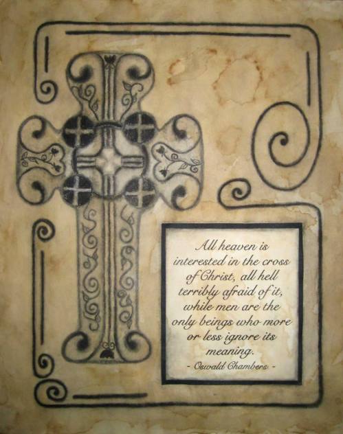 I did this piece of art work years ago. I love this quote by Oswald Chambers and I did a piece like this for Christmas gifts one year. Let’s not ignore the meaning of the cross this week – savor it with me.