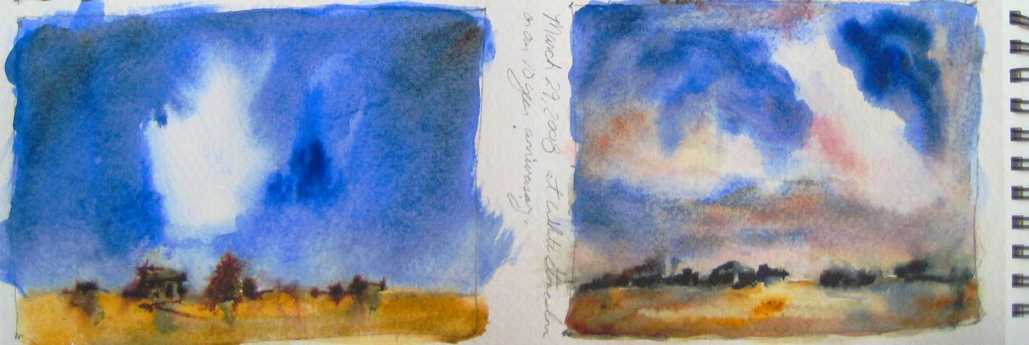 Here are some different paintings and sketches I’ve done over time of sunsets and skies.