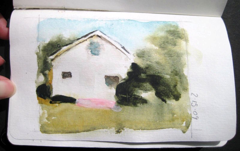 Below is a sketch I did in my small (5″ x 3″) sketch journal of an old house.