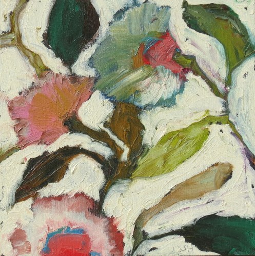 oil bar flowers white background, sandi hester, oil 6×6