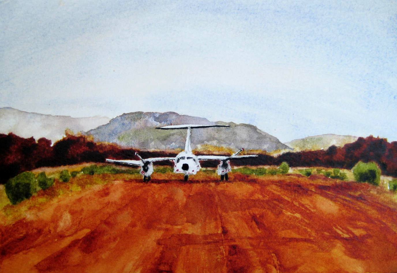 Thank you for those who prayed for the Crowders. I received an e-mail this morning saying they arrived safely. It took quite a bit longer than they expected. A 31 hour trip turned into 2 days. They were tired but arrived safely. I did this quick sketch painting Saturday while Grady fished. It was interesting timing because this is actually a picture Beverly gave me of the plane they fly in on once they get in Africa. You can tell by the painting that it’s quite small and the runway isn’t exactly paved. So this painting is for the Crowders safe arrival.