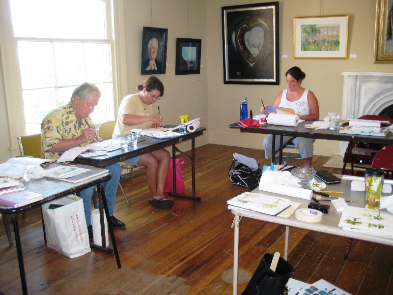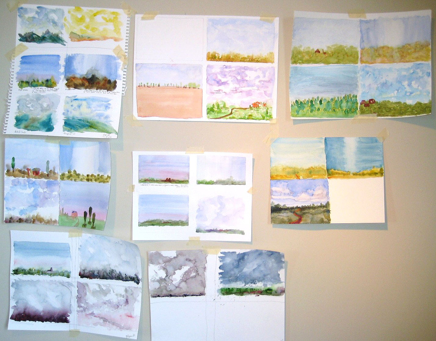 I can’t believe I only have 2 more weeks with this class!!! I’m going to miss these guys like crazy. I’m enjoying teaching far more than I thought I would. Well, as I predicted the class did great with skies and landscapes – see their sketches below (you can click on the pictures to see them larger). I’ve also included a couple more action shots from class. In the middle of class I got a text from Grady that said, “SOLD!!!!PRAISE JESUS!!!!!!”. Yep, that’s right – we’re under contract now on our house. I just can’t get over how quick this has all gone. I have a feeling I will be doing more packing than painting in the coming weeks, so things will be slim on the blog I have a feeling.