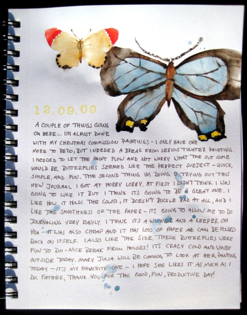 The pictures are out of one of my journals. Above is a close-up. I did this one really quickly – just wanted to do something quick and easy and loose. I love doing butterflies – they are so colorful and fun!