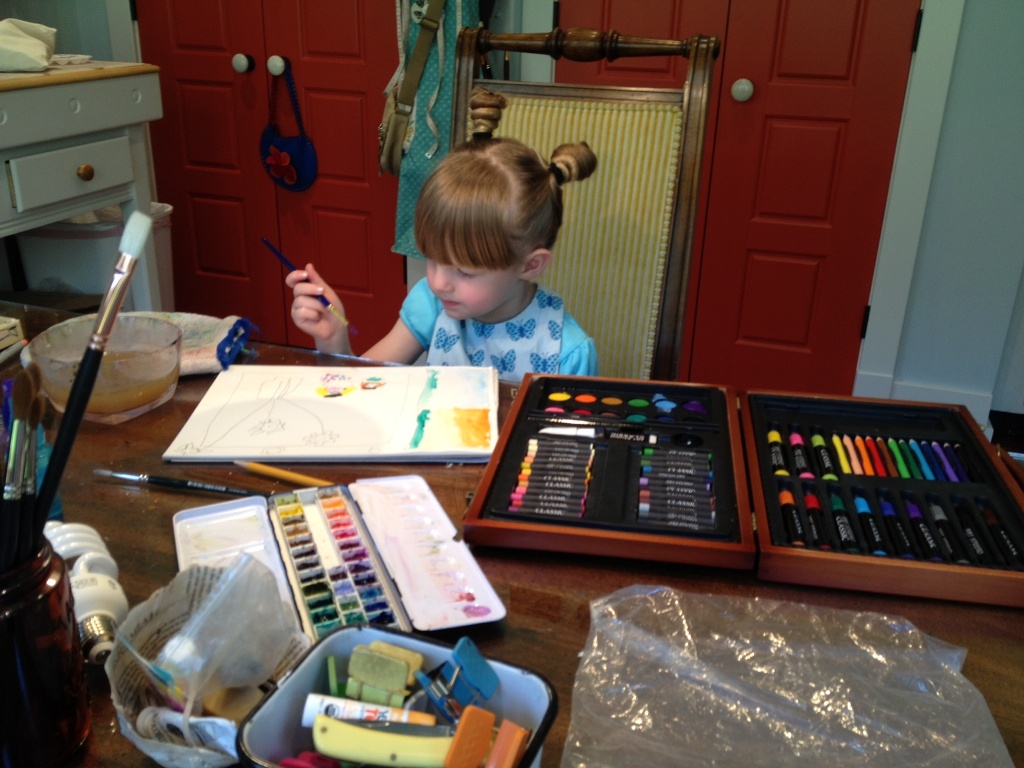 Here’s a quick video of them in action – there was serious concentration going on in this studio today – no playing around – they were serious artists today. We did take Cooper (my dog) breaks though – always nice to have a studio dog to love on when you need to take a break from painting!