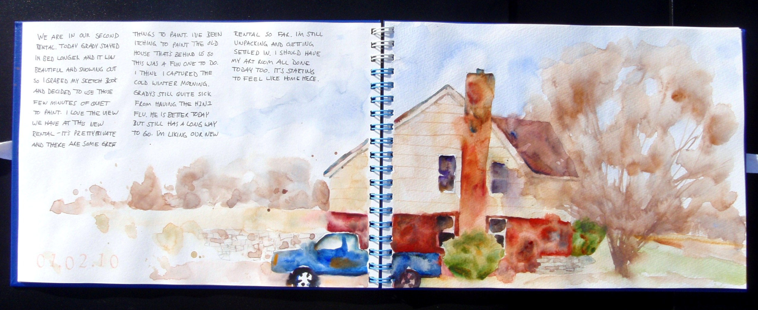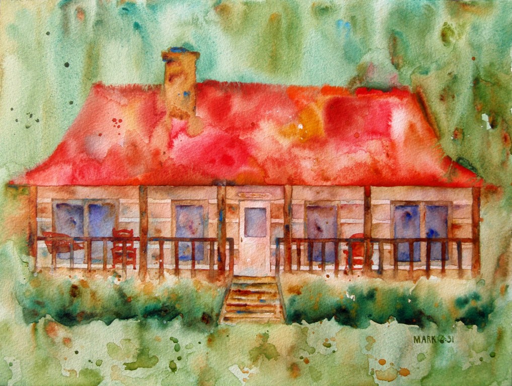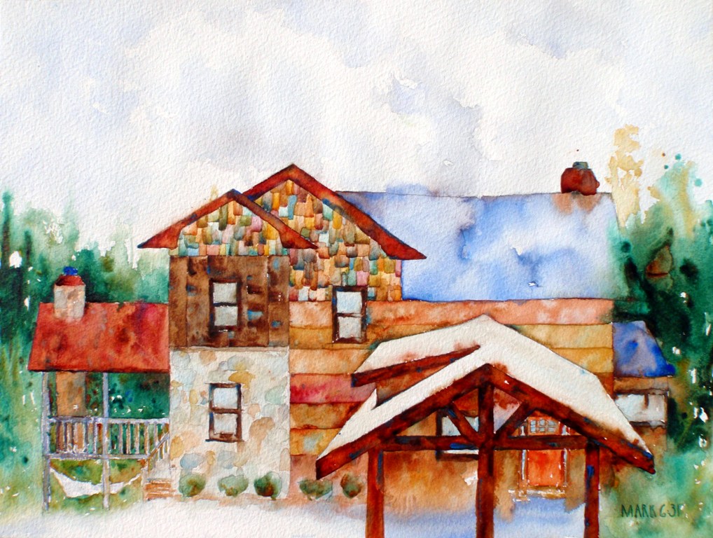 I finally got the courage up to give commission work a try. I picked a limited subject (houses) that I thought I had a relative grasp on and threw it out there to friends and family. I had 5 takers! That was just the right number to try and get done before the holidays. They took me MUCH longer than I thought they would. I painted from 3-5 different paintings of the same house for each commission – it took me that many times to get it right. Each painting took 3-5 days to paint, so if you add that up you can quickly see why it took me longer than I thought it would. During the time I was working on these commissions I did little else – my days were filled with painting – which was great and fun but something I would not want to do all the time. If I wasn’t painting I was thinking about how to resolve something in the painting I was having problems with. Each painting was mated and had a scripture on the mat that went with the painting. For the homes I used Joshua 24:15 “As for me and my house we will serve the Lord.” and for the cabins and vacation homes I used two different scriptures: Mark 6:31 “Come with Me by yourselves to a quiet place and get some rest.” and Matthew 11:28 “Come to Me, all you who are weary and I will give you rest.” In the end I was really happy with all of them and my customers seemed to be really happy with them too!
