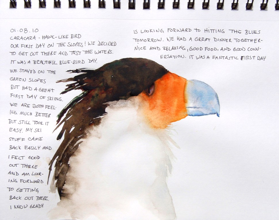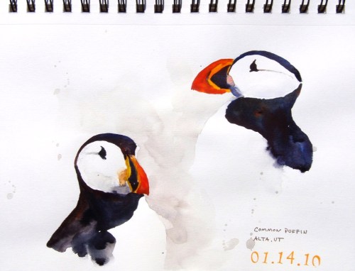 The two paintings/sketches are from a series of bird sketches I did on a ski trip we took this winter. I’ll use the next couple of posts to share more birdies with you. Hope you enjoy!