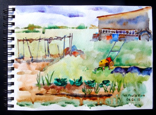 I’ve also painted many other things associated with Mr. Paul. Above is his house and blue truck that is always parked by his house. I’ve painting the field that’s behind both our homes (below).
