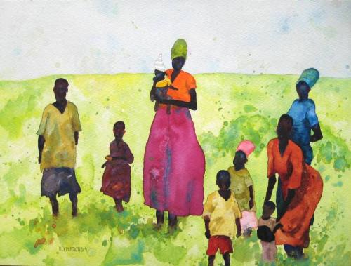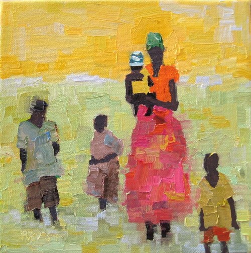 Those of you who are familiar with my work will recognize this painting – it’s my oil version of this watercolor painting I did a long time ago. It’s still one of my favorite pictures to paint from Africa. Here’s the watercolor version…