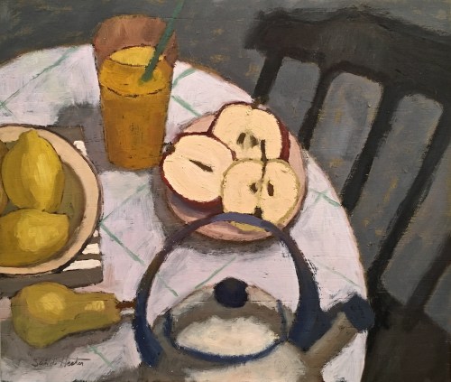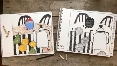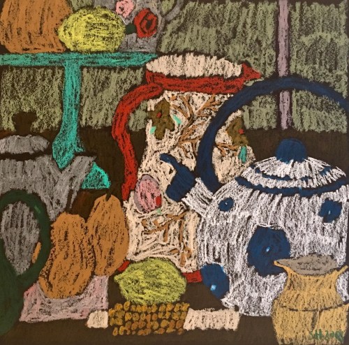 A still life I did one summer in my normal set-up style – still life set up on a table right outside my studio window on a day with strong direct sun light – doesn’t get better than that for me!